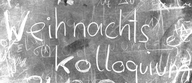 Das Poster des diesjaehrigen Kolloquiums finden Sie hier Poster WK 2019Das Weihnachtskolloquium (WK) findet seit 2012 jährlich statt und hat sich aus einem anfänglichen Treffen einer Gruppe von Studienkolleg_innen zu einem festen Termin entwickelt, mit Teilnehmer_innen aus den unterschiedlichsten Fachrichtungen der Mathematik. In den Fachvorträgen berichten ehemalige Studierende der TU von ihren aktuellen Arbeits- und Forschungsgebieten und geben somit auch einen Einblick, wohin der berufliche Weg — von Promotion bis Industrie — nach dem Mathematikstudium führen kann.